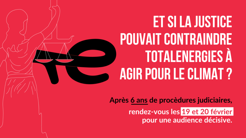 Communiqué de presse, Paris, le 18 février – Dans le contentieux climatique engagé par Notre Affaire à Tous, Sherpa, France Nature Environnement, ZEA et la ville de Paris contre TotalEnergies, une audience cruciale se tient les 19 et 20 février au Tribunal judiciaire de Paris. Il s’agit du premier contentieux climatique en France visant à contraindre une multinationale pétrolière à cesser sa contribution à l’aggravation du changement climatique.